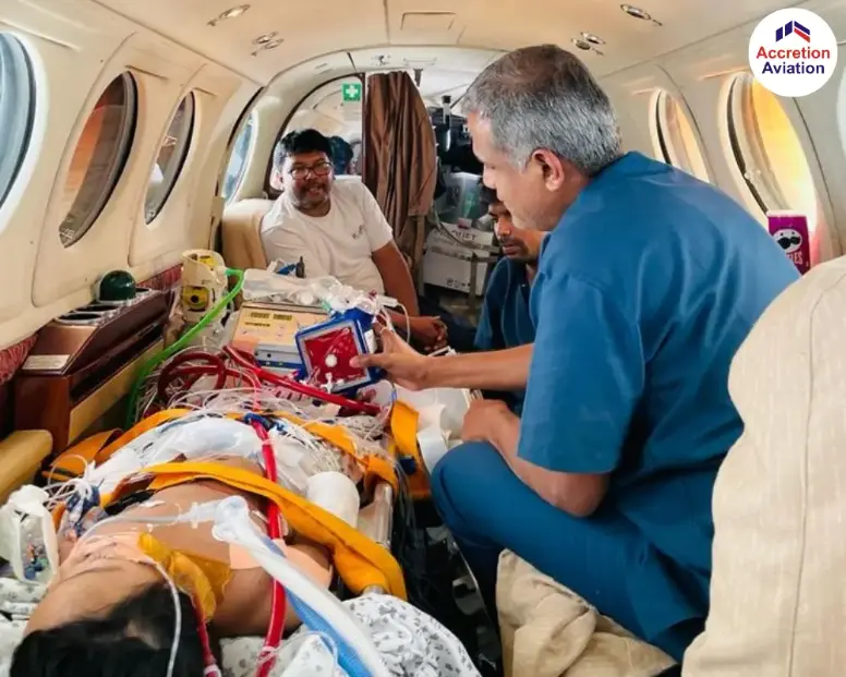 Accretion Aviation Air Ambulance Services in Leh provides transfers for critically ill patients to reach the nursing institution for intensive care and administration in the fastest and safest way possible. Our Air Ambulance in Leh is operational 24x7 and 365 days a year, available for booking at your convenience. We work round the clock and deliver our best each time – with us around, you will always be in trusted hands. The pilots and other aviation crew of the Accretion Aviation Air Ambulance Service in Leh are equipped with an intensive variety of missions completed successfully and with utmost efficiency. Each pilot and in-flight crew undergo check rides with an evaluator to ensure the required proficiencies in instant conveyance.