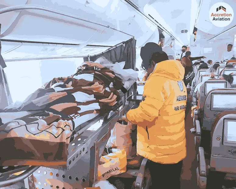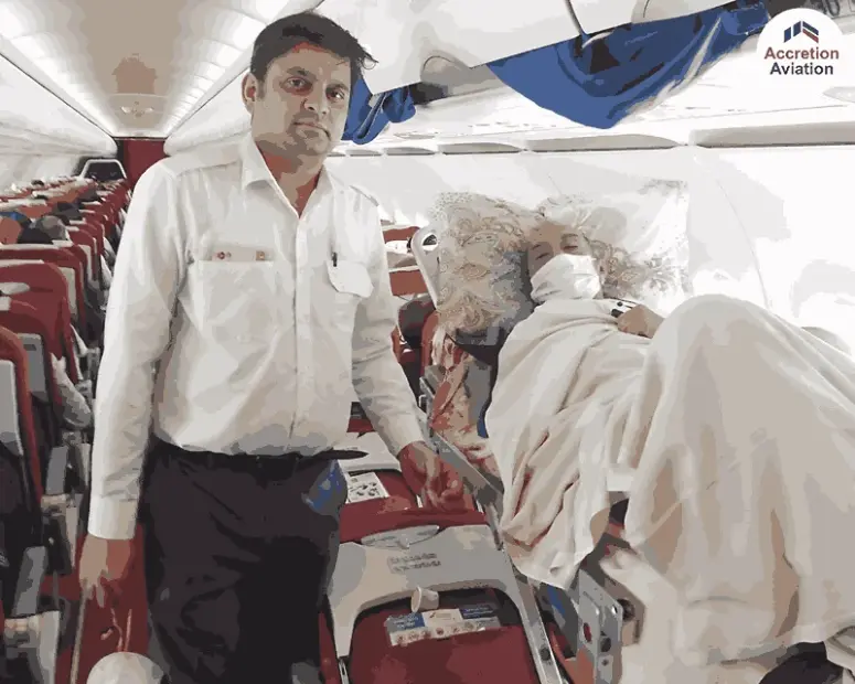 Accretion Aviation presents Air Ambulance via Commercial Airline Services in Bangalore. This is an extension of our air ambulance services which ensures an affordable alternative that provides transfers for ill patients to reach the nursing institution for intensive care and ministration in the fastest and safest way possible. Our Air Ambulance via commercial airline in Bangalore is operational 24/7 and 365 days a year, available for booking at your convenience. We work round the clock and deliver our best each time – with us around, you will always be in trusted hands. The pilots and other aviation crew of the Accretion Aviation Air Ambulance via Commercial Airline Service in Bangalore are equipped with an intensive variety of missions completed successfully and with utmost efficiency. Each pilot and in-flight crew undergo check rides with an evaluator to ensure the required proficiencies in instant conveyance.