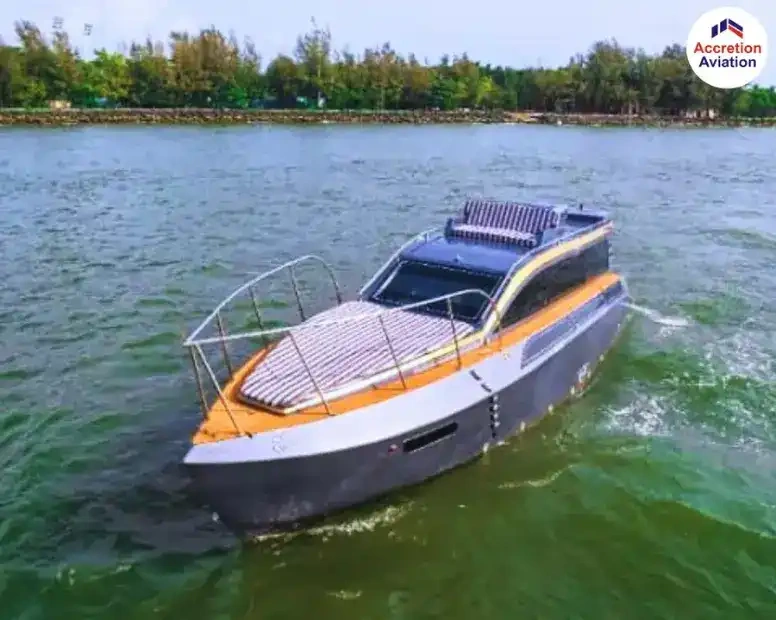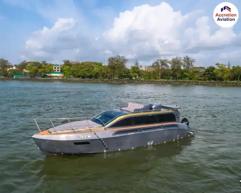 The Amzonite is a motor yacht available for rent in Goa with a capacity of up to 13 guests. The sleek black exterior gives it a distinct look on the water and sets it apart from most yachts in Goa.