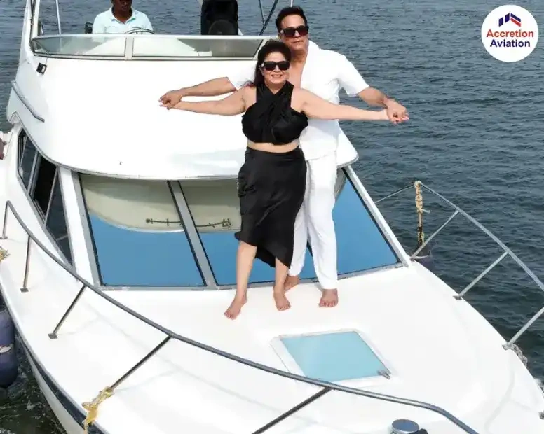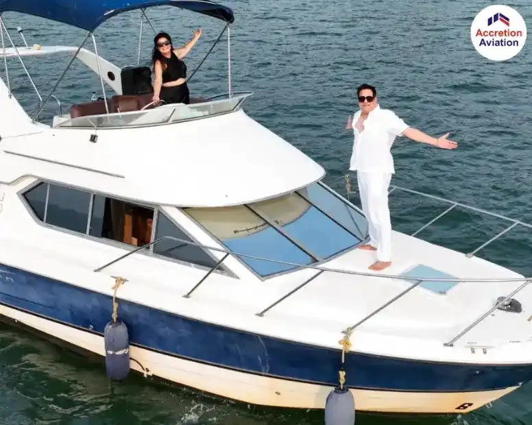 The Bayliner is one of the more intimate yachts in the fleet and works best for couple getaways, proposal setups, small birthday celebrations, anniversary outings, and pre-wedding photoshoots. The white exterior makes it a popular choice for photo and video shoots on the water. To check availability and get a quote, discover more yacht booking options in Goa.