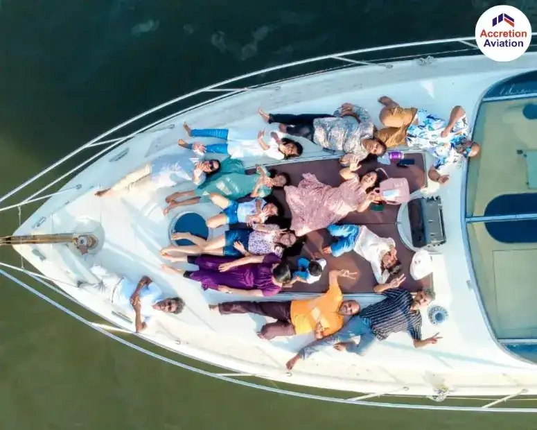 The Blue Diamond suits mid-sized celebrations and premium gatherings. It works well for birthday parties, anniversary dinners, couple getaways, bachelorette outings, pre-wedding photoshoots, corporate events, and special occasion dinners on the water. The flybridge is a standout feature for sunset viewing, and the indoor lounge gives you a comfortable enclosed space if needed. To check availability and get a quote, see all yacht rental options in Goa.