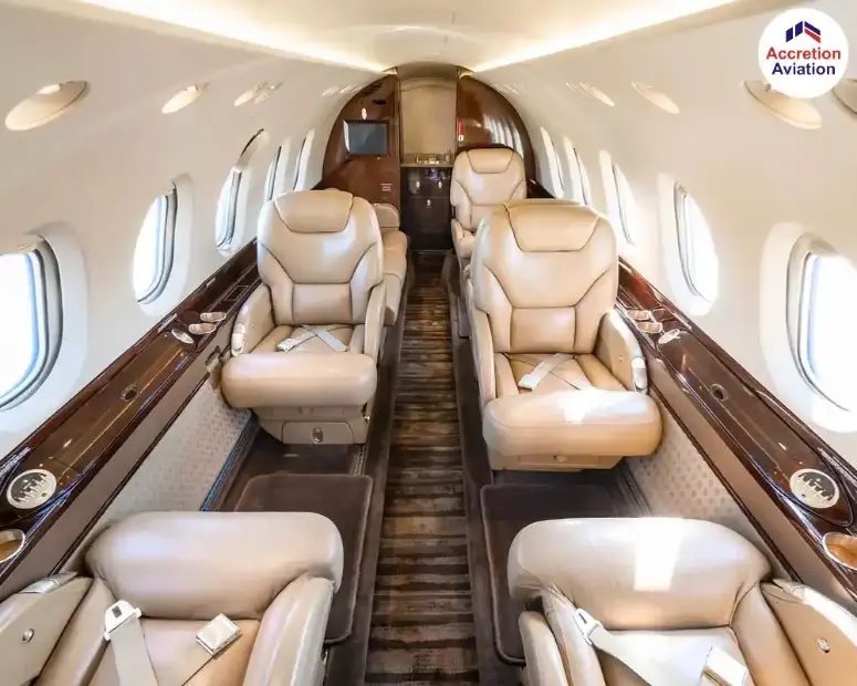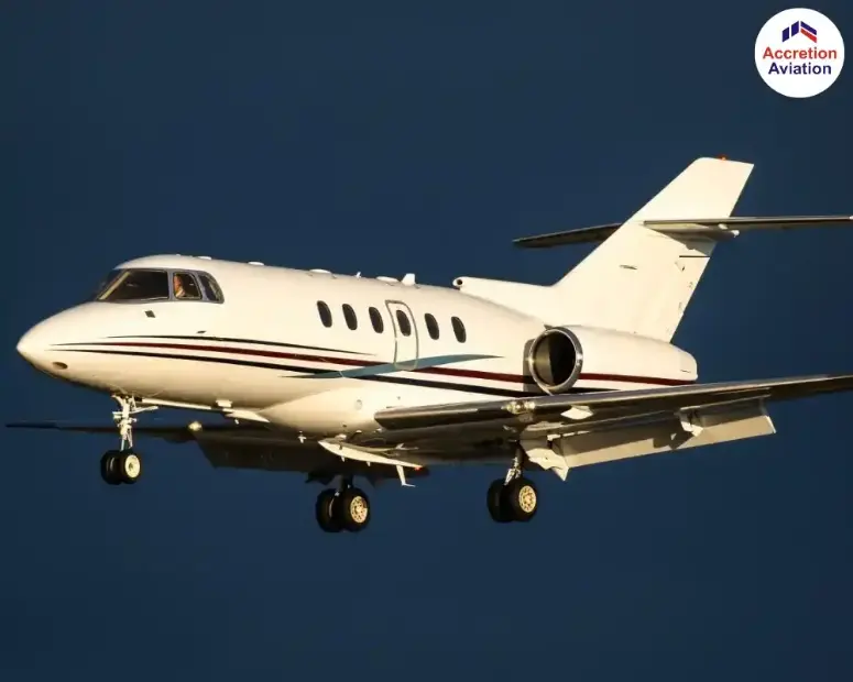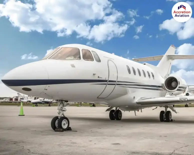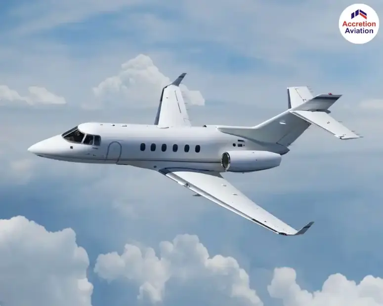Hawker 800 XP Jet at Accretion Aviation where comfort meets a sky-high elegance.