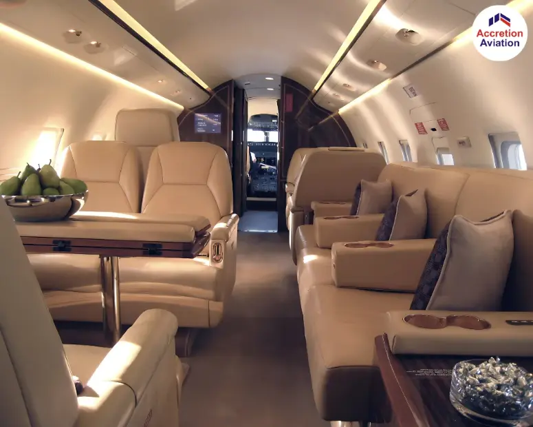Challenger 604 Jet Charter at Accretion Aviation where comfort meets a sky-high elegance.