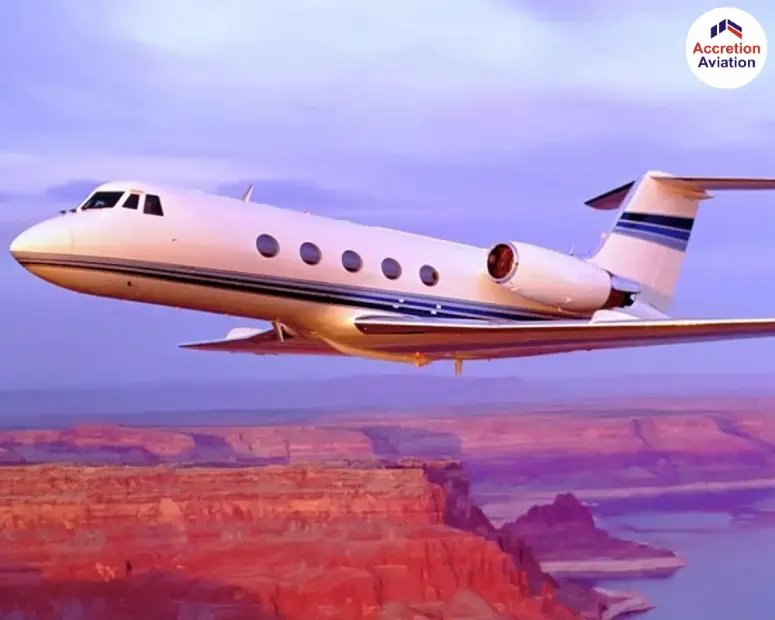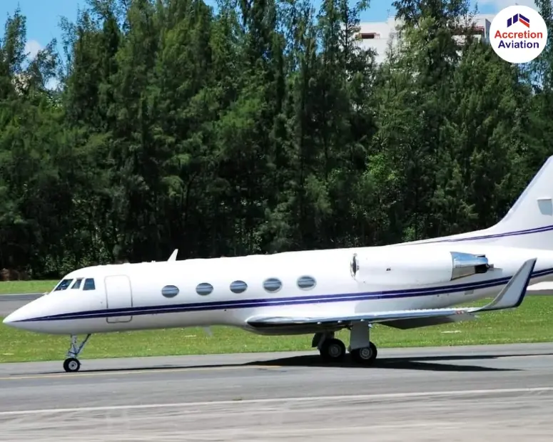 Gulfstream II Jet Charter at Accretion Aviation where comfort meets a sky-high elegance.