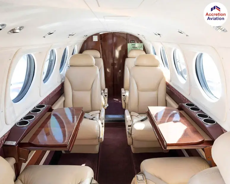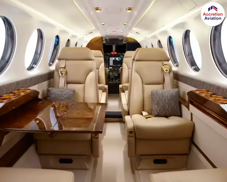 Super King Air 350 Plane Charter at Accretion Aviation where comfort meets a sky-high elegance.